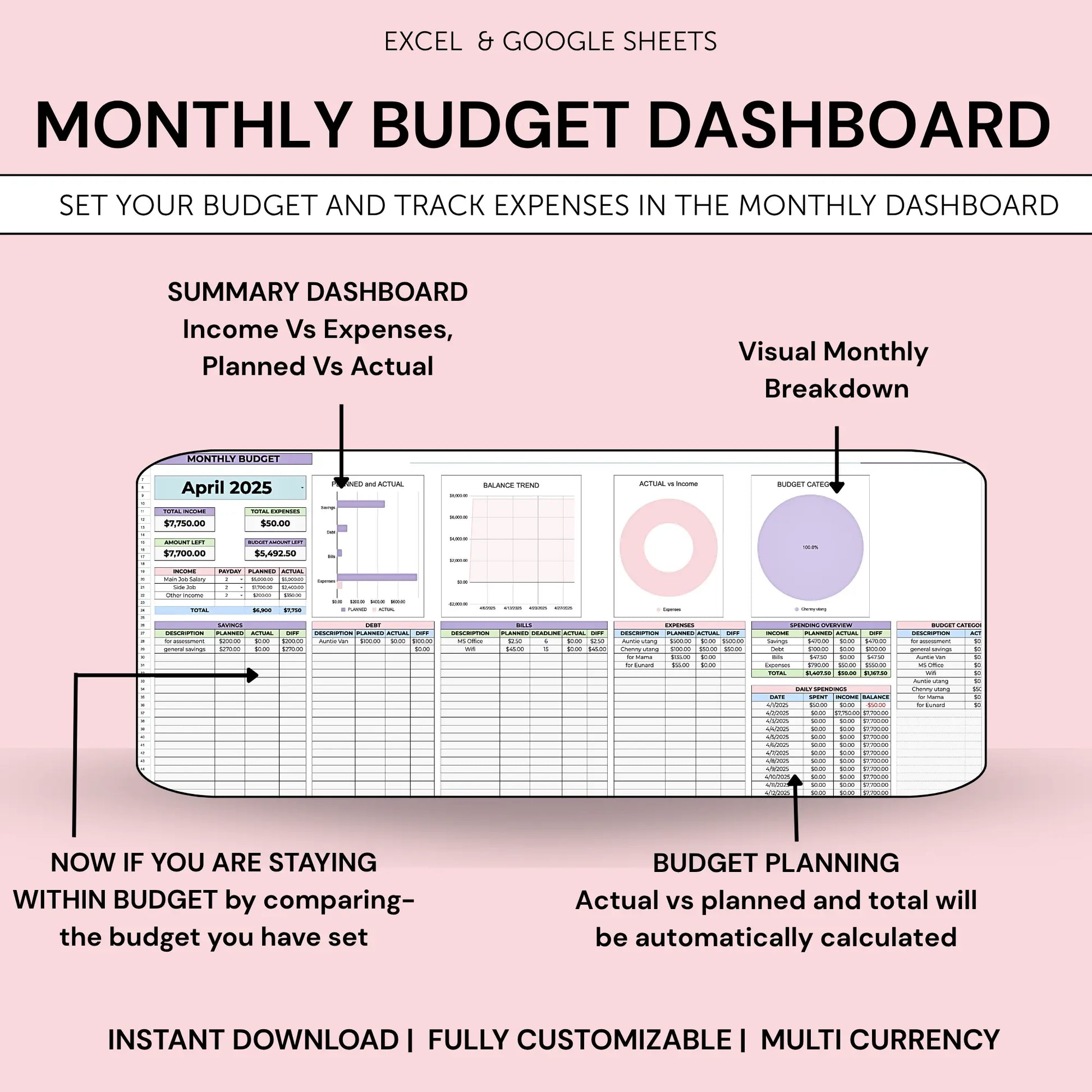 This is the ultimate monthly personal finance planner that you will ever require. It serves as a budget planner equipped with integrated dashboards.