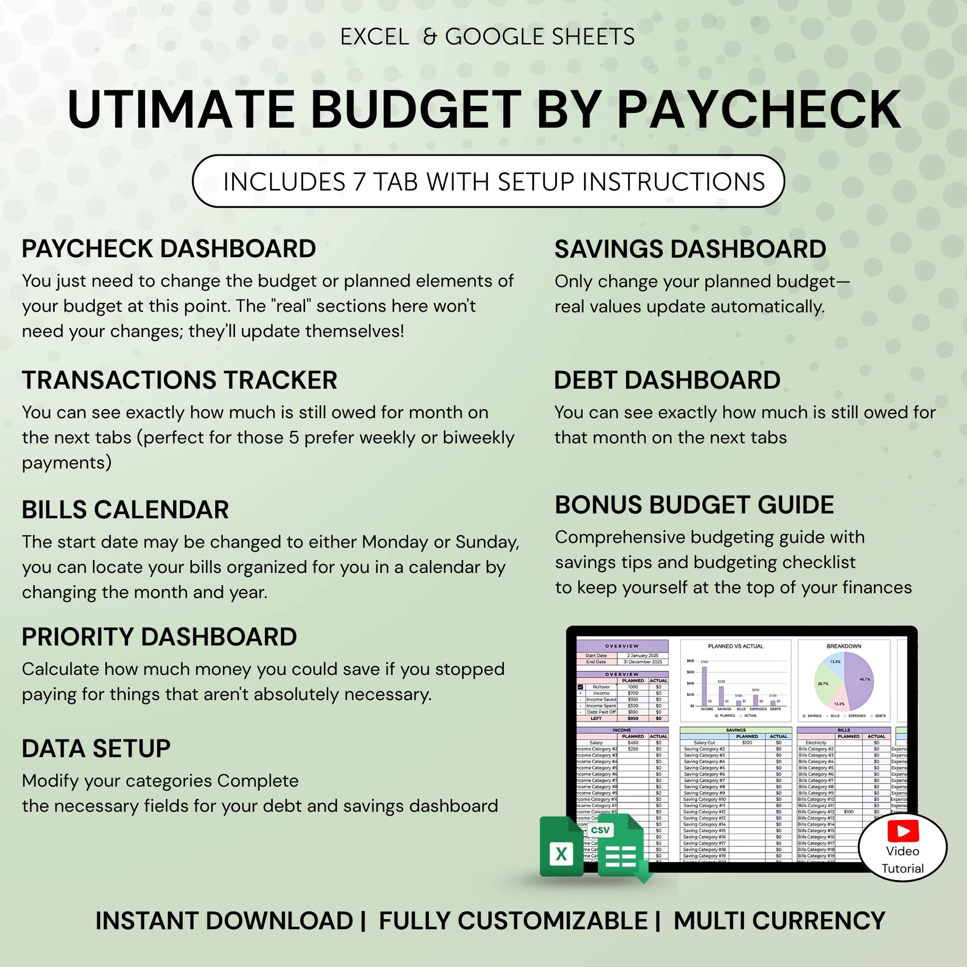 Ultimate Paycheck Budget Template Excel and Google Sheets